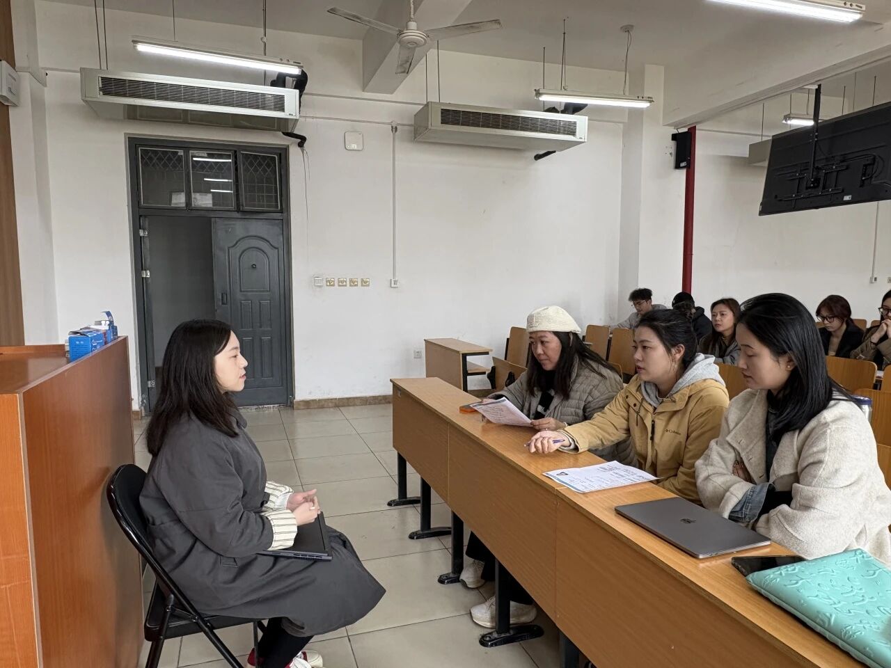 交流互动环节,学子们围绕执行导演、美术师、抽卡师、剪辑师四大核心岗位的任职要求、职业发展路径等问题,与企业负责人展开深入沟通。负责人耐心解答每一位学子的疑问,结合行业经验提供针对性求职指导。